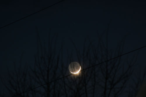 Der junge zunehmende Mond … Veröffentlicht am 14. Januar 2013 von Petra …. ruht sich auf der Stromleitung aus.